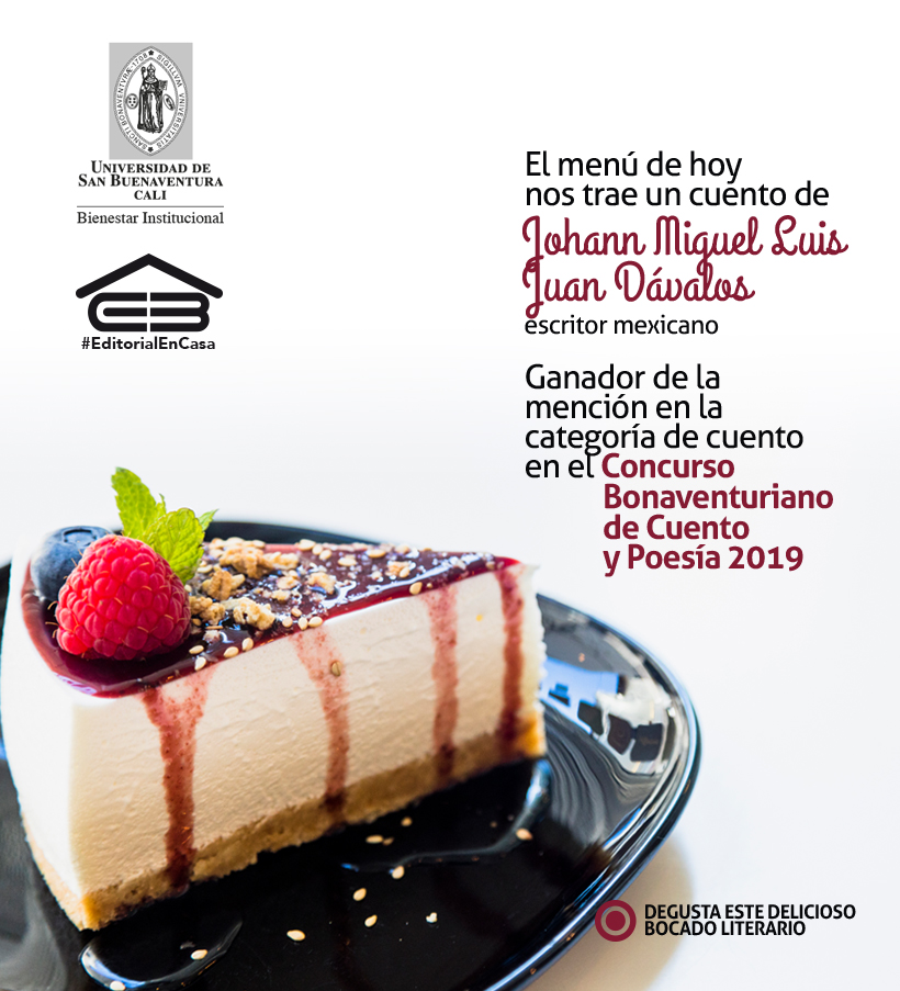 Johann Miguel Luis Juan Dávalos (México). Ganador del primer lugar en el XII Concurso Estatal de Cuento “Un pueblo en la llanura”. Mención honorífica en el Concurso Internacional de Cuento “Abriendo Puertas 2017”.